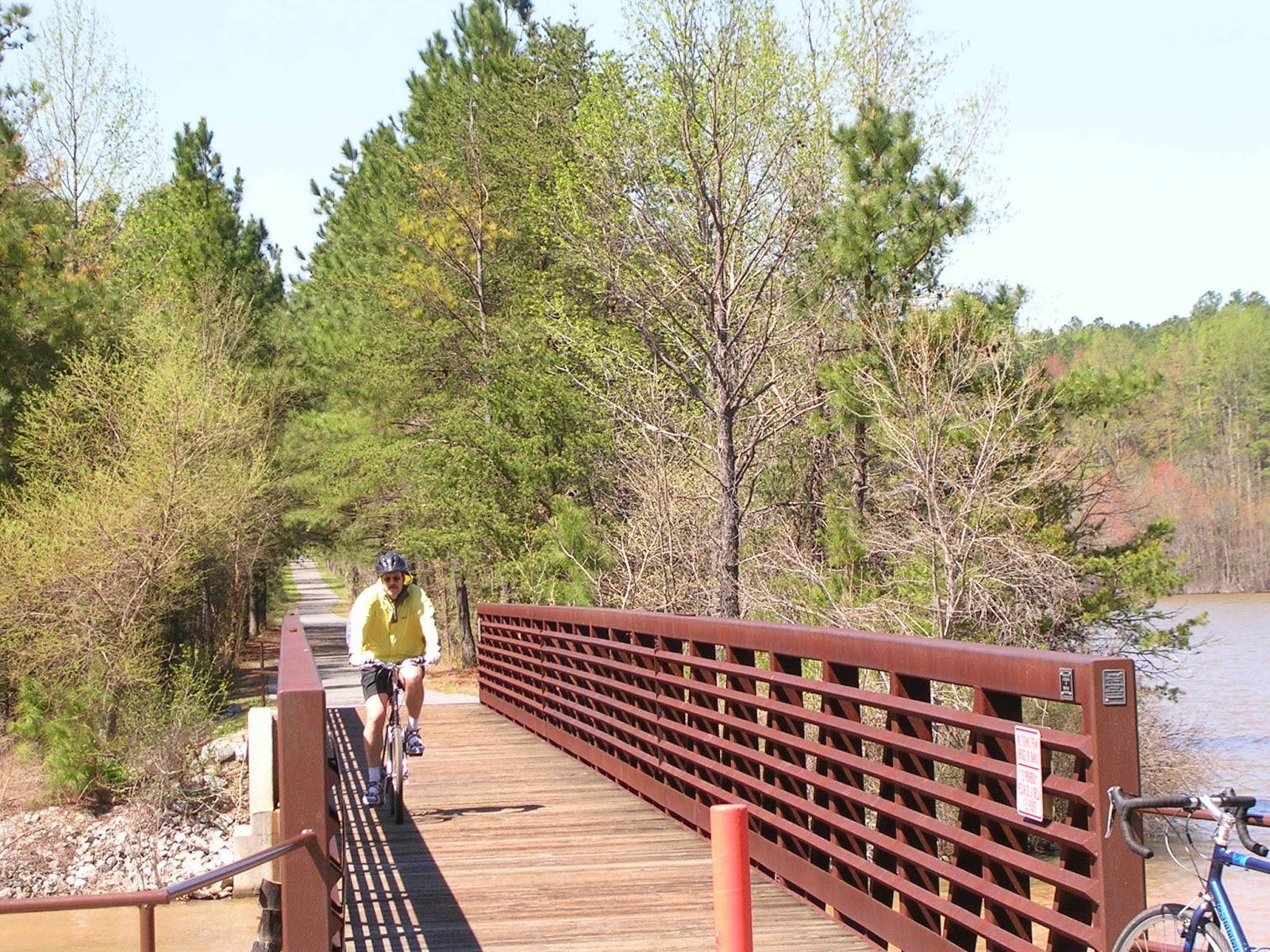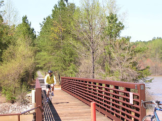 But being into outdoor activities there are too many options for things to do. I have access to over 30 miles of greenways within the city limits. For those of you not aware, a greenway is a paved path for walking/running/cycling that generally follows, lakes, streams, or roads, but sometimes takes the place of abandoned railroad lines. Sometimes, they have cool bridges that cross lakes.