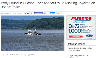 32 year old Ian Jones, boyfriend of Annie Lennox's daughter. Died on the hudson river when his tandem kayak overturned. She lived, he died. She was wearing PFD, he wasn't.
