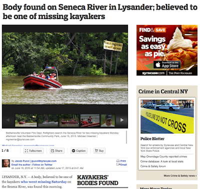Two dead, after kayak flips in a river. PFD's were found, but they don't know if they were being worn at the time of the incident (if they were wearing them, they either weren't adjusted correctly, or not zipped/buckled.)